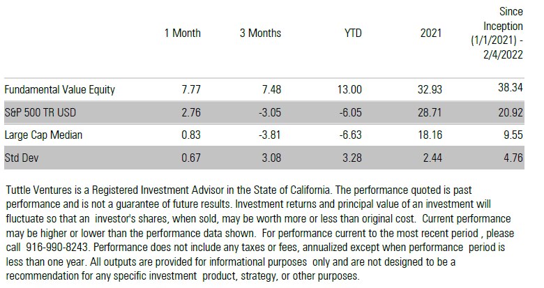 Let’s visit how the Tuttle Ventures Fundamental Portfolio has performed so far: