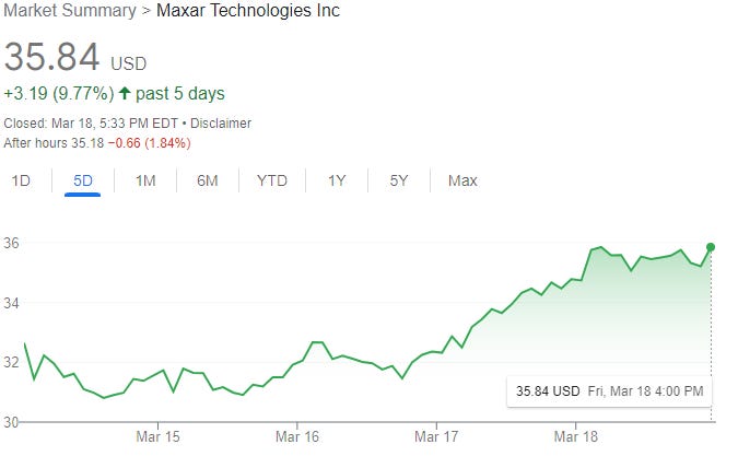 Since I wrote about $MAXR Technologies here, the stock is up +9.77%.