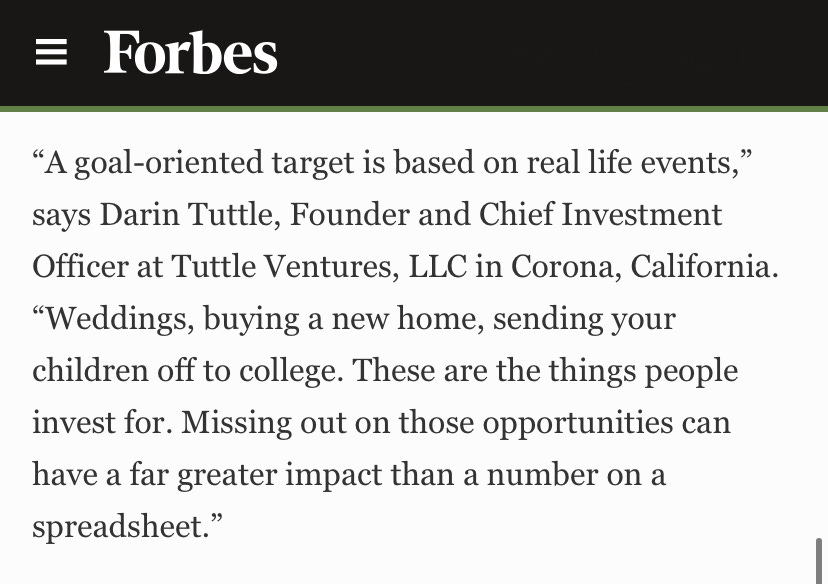 Today’s newsletter is an excerpt my quote in Forbes Magazine: Here’s The Only Retirement Risk That Really Matters To You